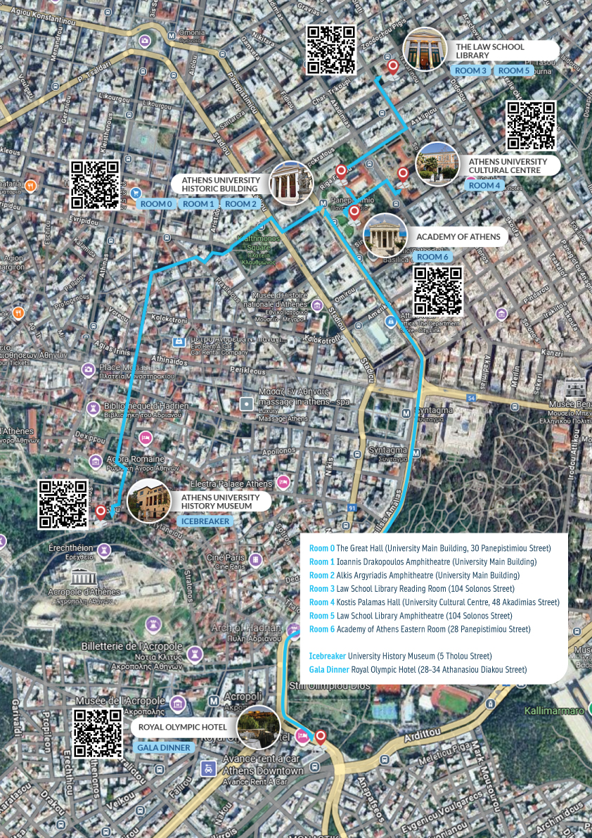 MedGU-25 sessions will take place from November 10th to 12th, 2025 at the Great Hall of the National and Kapodistrian University of Athens, the "Ioannis Drakopoulos" Amphitheatre, the "Alkis Argyriadis" Amphitheatre, the "IRIS" Cultural Events Hall of the University of Athens Club, the "Kostis Palamas" Hall (Guest House), the Law School Library Amphitheatre, and the Main Hall of the Academy of Athens: